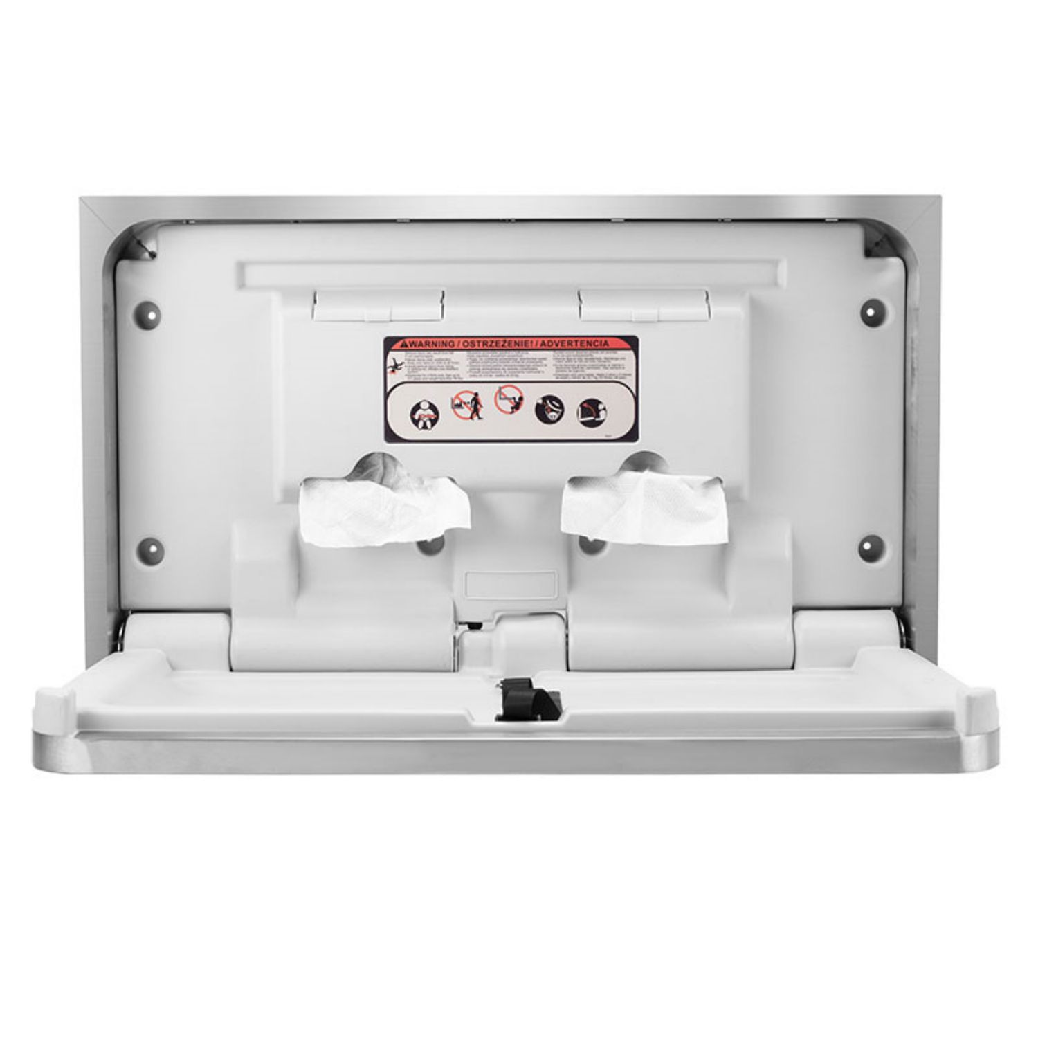 DRYTA® Poziomy, montowany wnękowo stół do przewijania dzieci ze stali nierdzewnej
